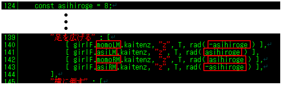 ▼両ももの回転は momoLM(もも Left Model)と momoRM(もも Right Model)、両足首の回転は asiLM(足 Left Model)と asiRM(足 Right Model)で表現します。