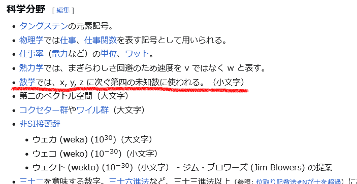 ▼ https://ja.wikipedia.org/wiki/W#W_の意味 より