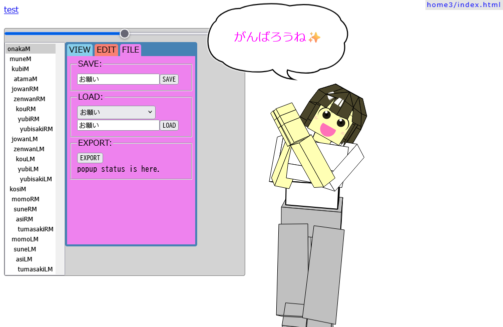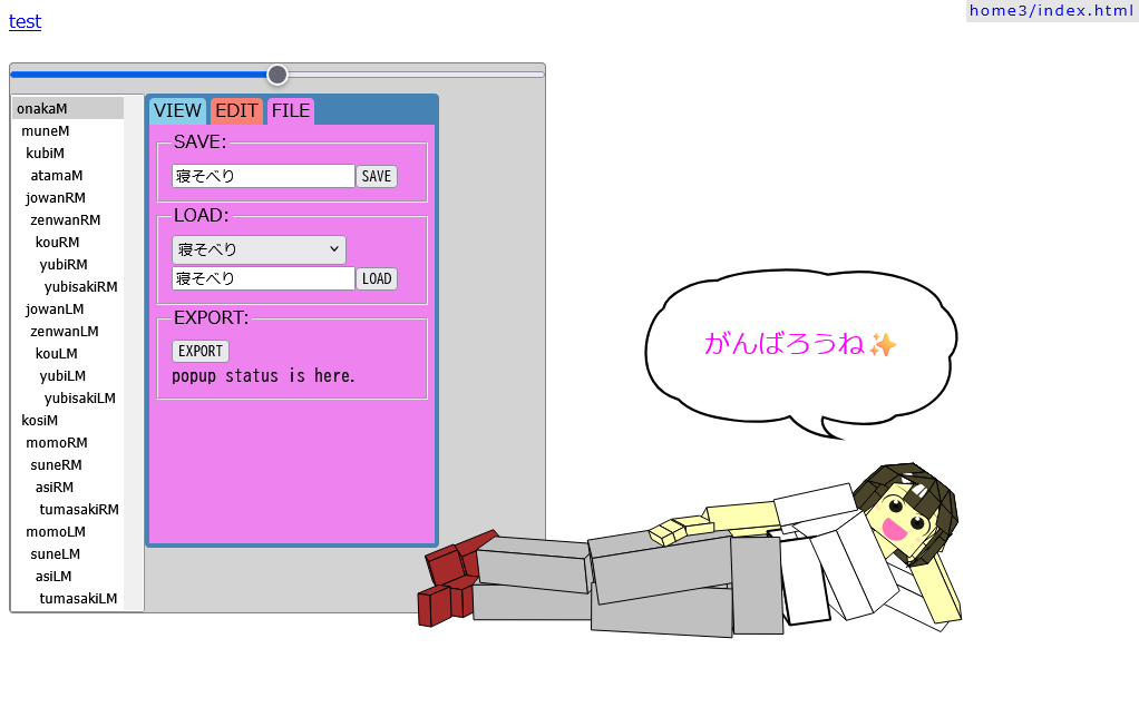 ラジオ体操のアニメを作っていて、「ポーズ決め」がうまくいかないので、ポーズ(姿勢)のエディタを作りました。